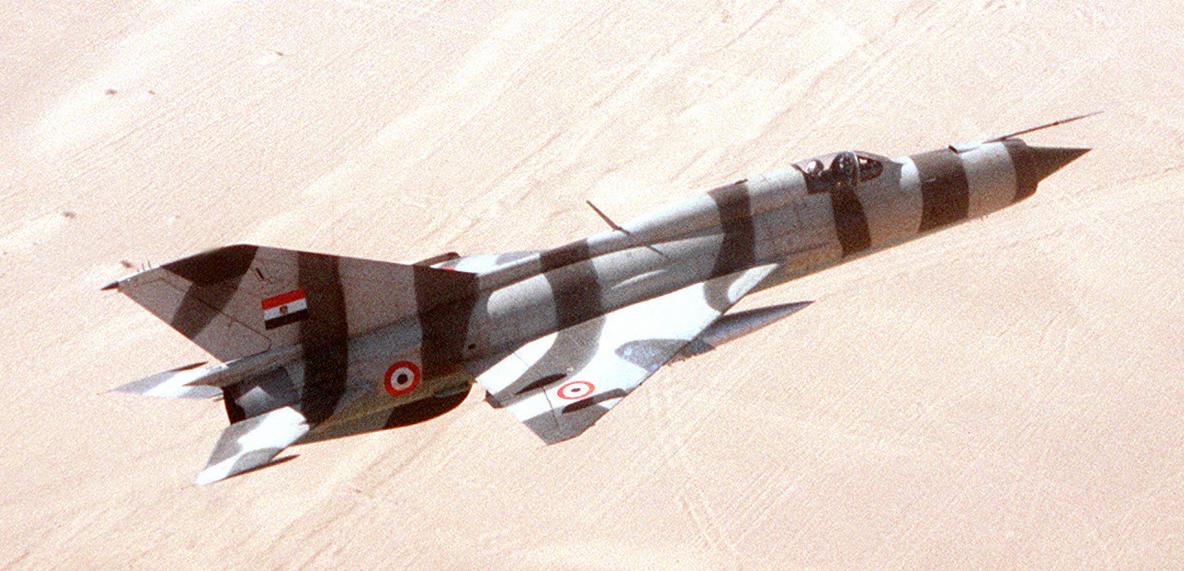 | Description | English: A right side view of aircraft in flight over the desert during exercise Bright Star '82. The aircraft is Egyptian MiG-21PFM. |