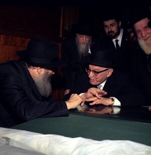 - ↑ Sicha, 10 Shevat 5735. Yiddish Transcript, Audio, Video